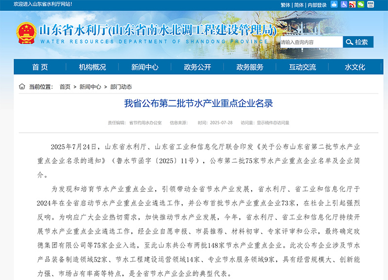2025年7月24日,我司通過(guò)山東省第二批節(jié)水產(chǎn)業(yè)重點(diǎn)企業(yè),為有關(guān)部門(mén)認(rèn)可我們的工作...